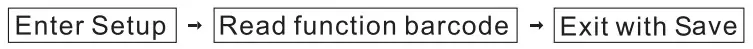 - If you want to set up the function of the barcode scanner. Read the ‘Enter Setup’ barcode, then the ‘Function Setup’ barcode, and close with the ‘Exit with Save’ bar code.