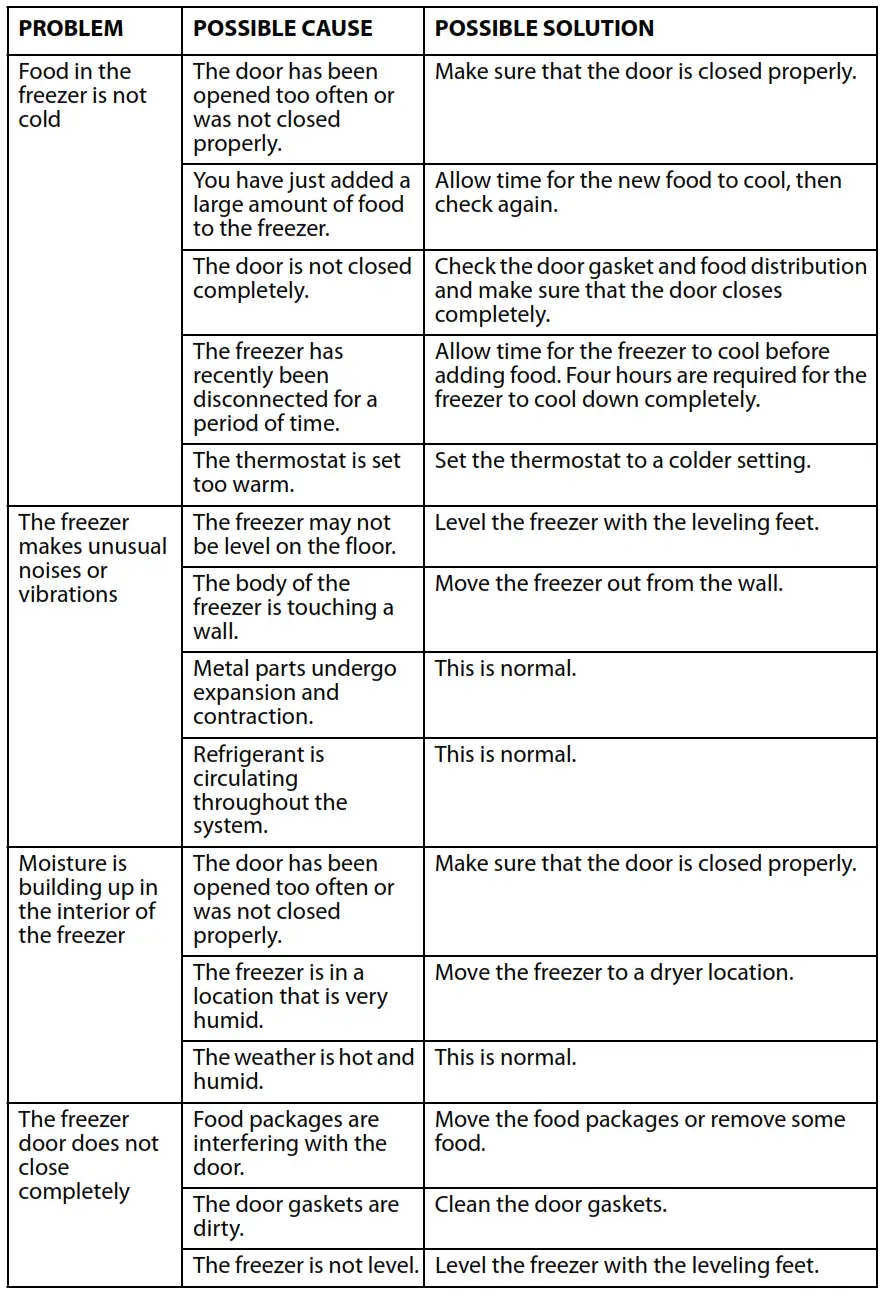 CAUTION: Do not try to repair your freezer yourself. Doing so invalidates the warranty.