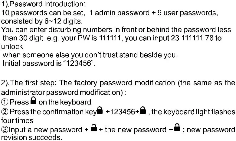 Please DO keep in mind your admin password,otherwise need to return lock to the factory.