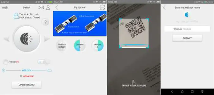 to enter picture 2,then click the upper right corner icon to can to bind lock to app.lf cannot scan due to some unknown reason,please click the hand icon in picture 3 to manually input the numbers on QR code.