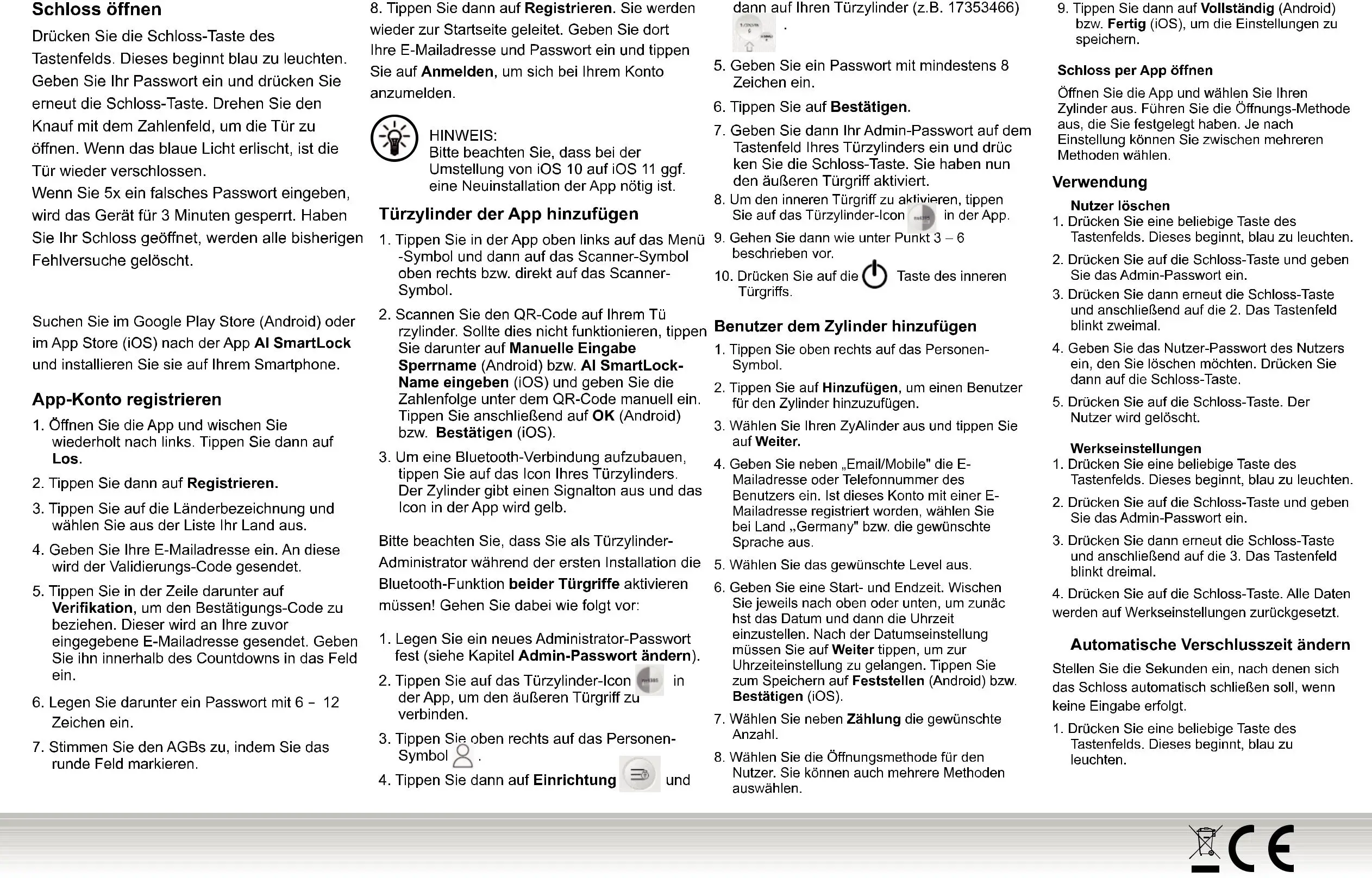 Remarks: Scan the QR code stuck on battery box cover or packaging box flap to bind the lock cylinder to your smart phone app.