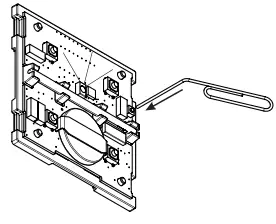 Use a suitable tool (paper clip, screwdriver) to push on the control pin. The batteries are raised and the programming button is released.