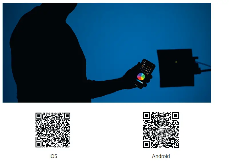 Using your ALL-IN panel with the new app for smartphones is a convenient way of controlling your light. It is available as free download on Android and iOS. You can store your own color filters in the app by dialing the de-sired RGB / Bi-Color values, have more control over the hues and saturation of lighting effects, and much more. Give it a try and you will be amazed about the convenience in your workflow. Find the QR codes for direct download below.