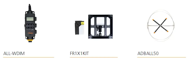 Unpack your panel and accessories from the box. The panel features a built-in dimmer unit which can be controlled on the back of the panel. Plug in your AC adapter or D-Tap cable to the input box of the panel. If the cable is too short, just use the included extension cable in between. When you connect the AC adapter to the power outlet you’re ready to go. If you have also purchased the optional DMX Attachment (ALL-DMXAT) or the Wired Dimmer (ALL-WDIM) you can put them between the panel (or extension cable) and the AC adapter (or D-Tap cable). Just note that you need batteries that can handle the power draw of 70 watts from the panel. There’s a simple calculation for that: