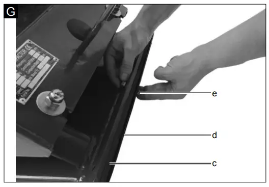 - Manually screw the spark plug (8) in and tighten it with the spark plug spanner (g) approximately 1/4 of a revolution.