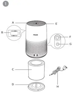 - Always turn off the air purifier first, then unplug adapter from wall outlet, when you want to moving, cleaning appliance, replacing the filters or carry out other maintenance