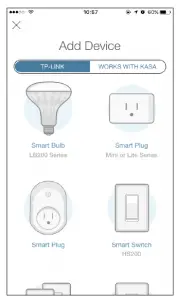 Tap the + button in the Kasa app and select Smart Plug Mini or Lite Series.