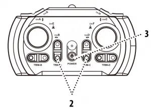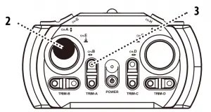 By operating the individual TRIM buttons, the neutral position (not the position of the joystick) for the individual channels is changed.