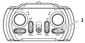 When the LED is lit, the power is ON. When the LED is slowly flashing, the LED is in pairing mode. A flashing LED making a beeping sound means the battery level is low and that the battery needs to be replaced. - TRIM-A to TRIM-D button