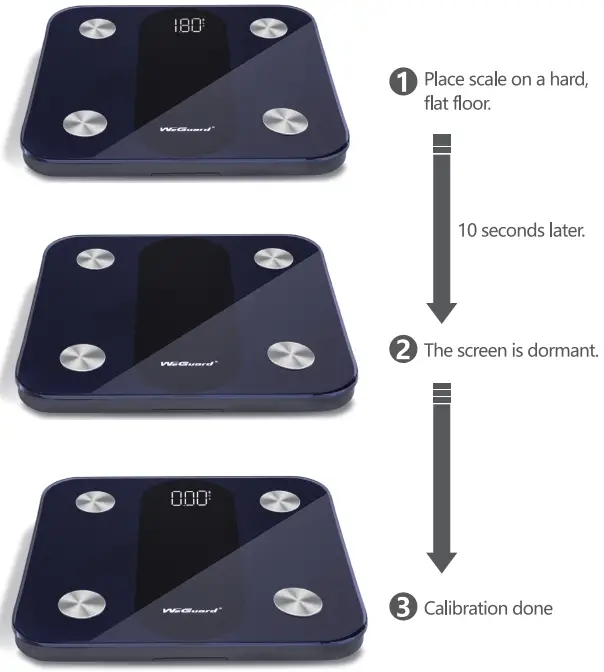 – Just step on the scale and turn on the power, step down and return the reading to 0.0kg / 0.0lb, and the calibration will be performed automatically.