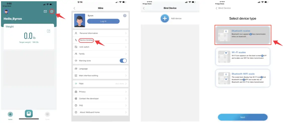 - Click the add device and choose the ” Bluetooth Scales· option. Device binding done!