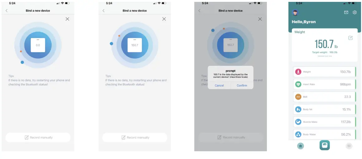 For the first use, you need to bind with our body fat scale device.