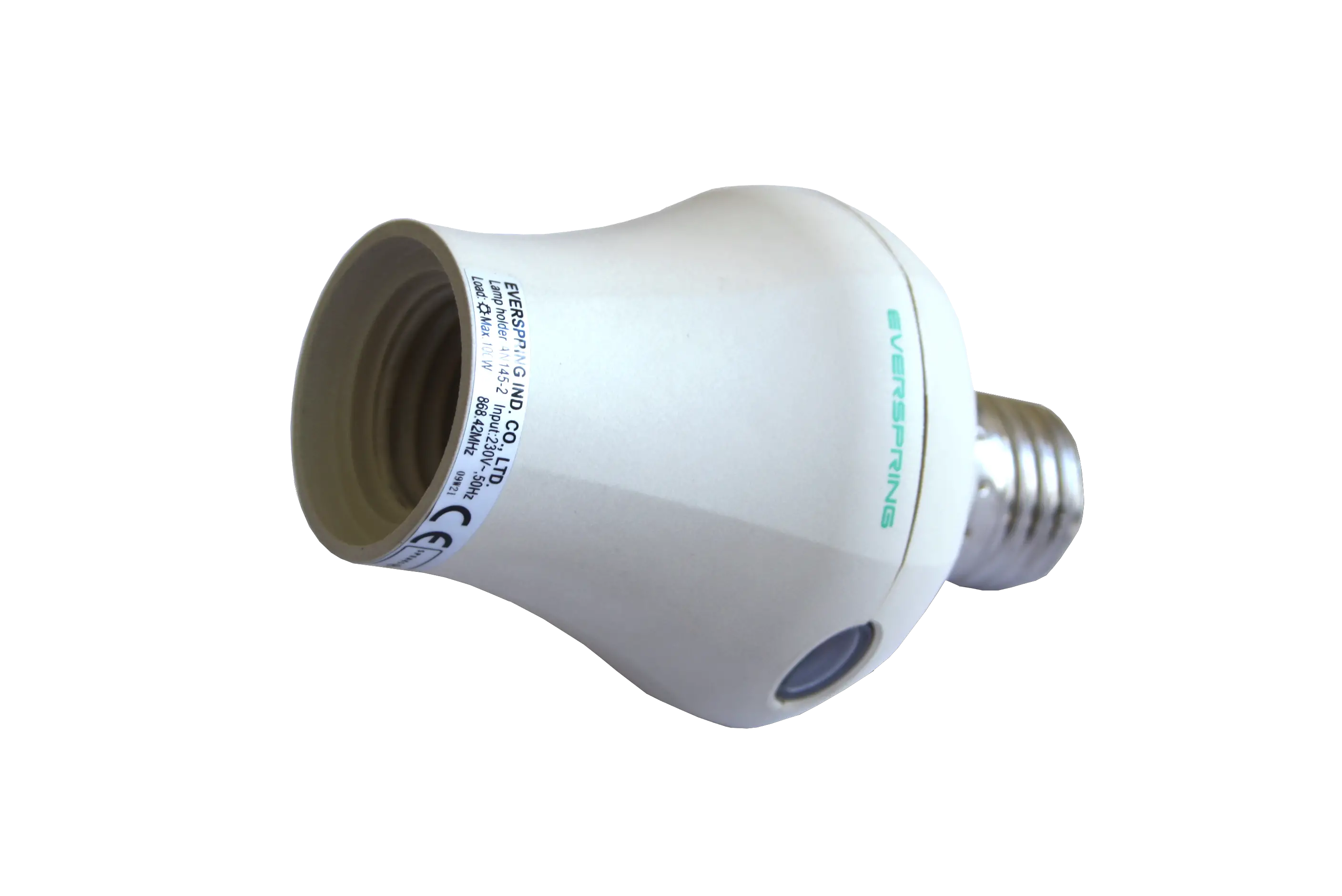 The Everspring Lamp holder allows controlling an electrical load both wirelessly via Z-Wave and locally using the ON-/OFF button on the device. After the module is included into the controllers Z-Wave network, the lamp can be switched ON/ OFF by every associated device in the network. Pressing the On/Off button on the device will control directly the On/Off status of the connected incandescent lamp without using the wireless controller. This lamp holder is designed for 100W incandescent lamps and energy saving bulbs with a maximum load of 27W.