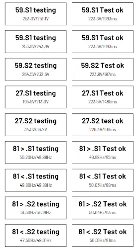 - The inverter will automatically run the test until the screen shows “Test end”, if the test passes, it will show “test ok’, if the test is failed, it will show “test failed”.