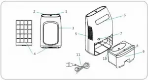 - Remove the dehumidifier and power cord from the packaging.