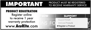 We recommend that you visit us at www.AcuRite.com for the fastest way to register your product. However, product registration does not eliminate the need to retain your original proof of purchase in order to obtain warranty benefits.