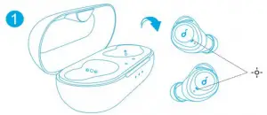 - Take the earbuds out of the charging case, the earbuds will automatically enter the Bluetooth pairing mode.