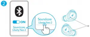 • The LED indicator on earbuds will flash white. - Select “Soundcore Liberty Neo 2” on your device’s Bluetooth list to connect.