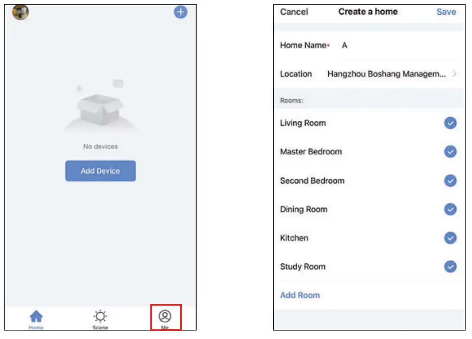 Step 3 Click “Me” “Home Management” “Create a home”, and you can customize the home name and related settings.