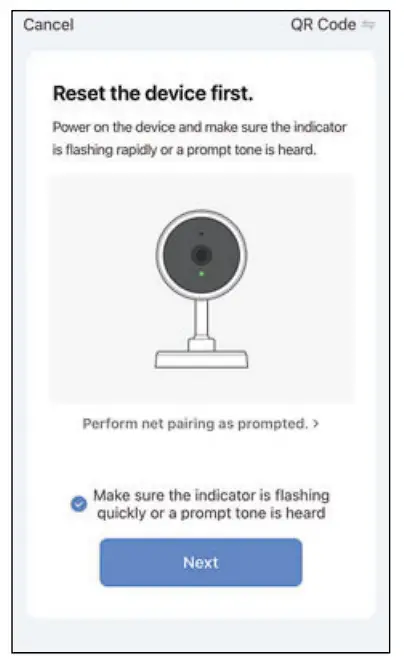 And then reset the camera and click “Next” on App.