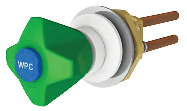Application: Panel mounted valve for water. Valve has 10mm OD brazed copper tubes on inlet and outlet.