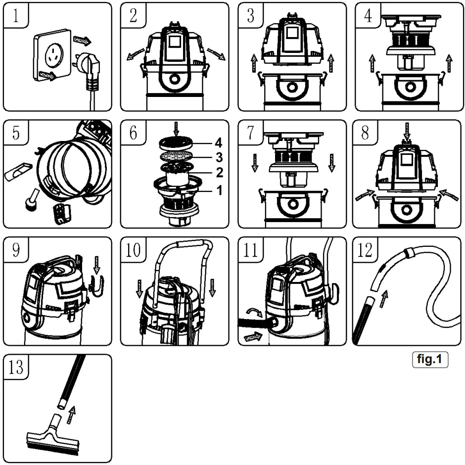 ✔ For dry vacuuming ensure the cartridge filter is firmly in place before operating the cleaner.