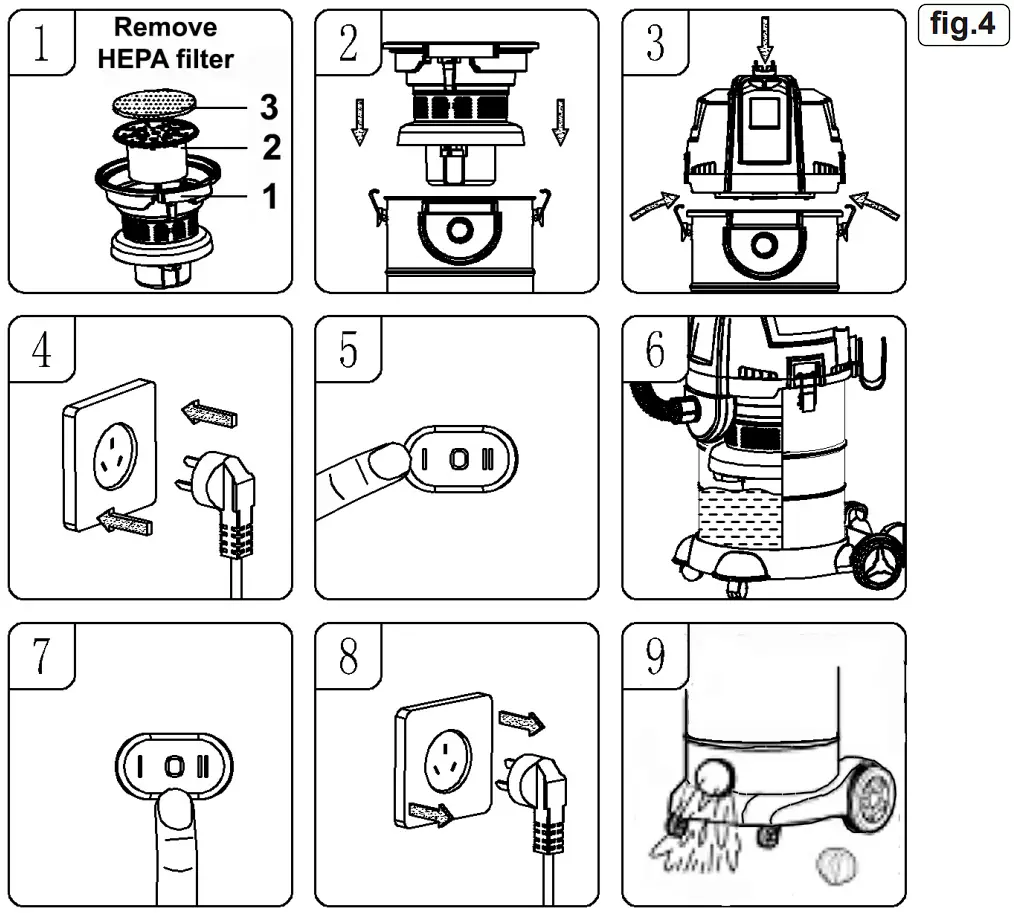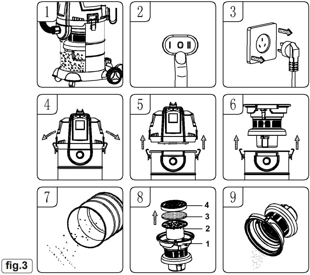 - Turn off cleaner and disconnect from power supply. (fig.3.2) (fig.3.3)