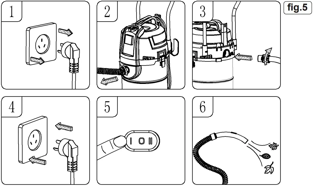 - Aim hose assembly at area to be cleared. (fig.5.6)