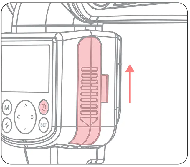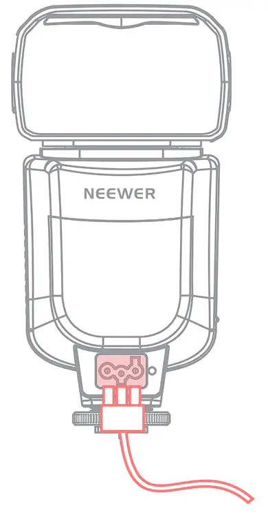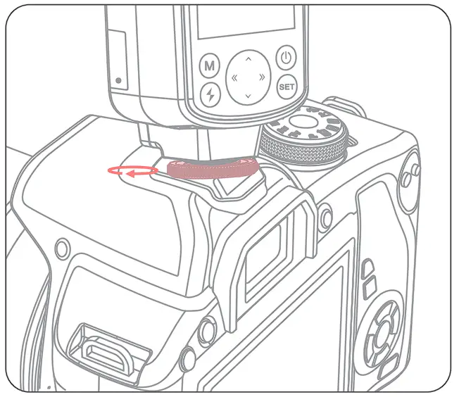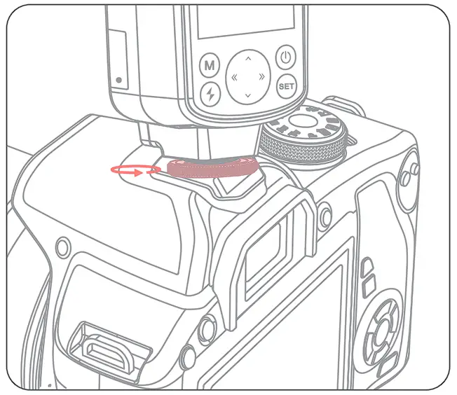 2: Insert the flash hot shoe mount into the camera hot shoe until it is aligned with the camera hot shoe.