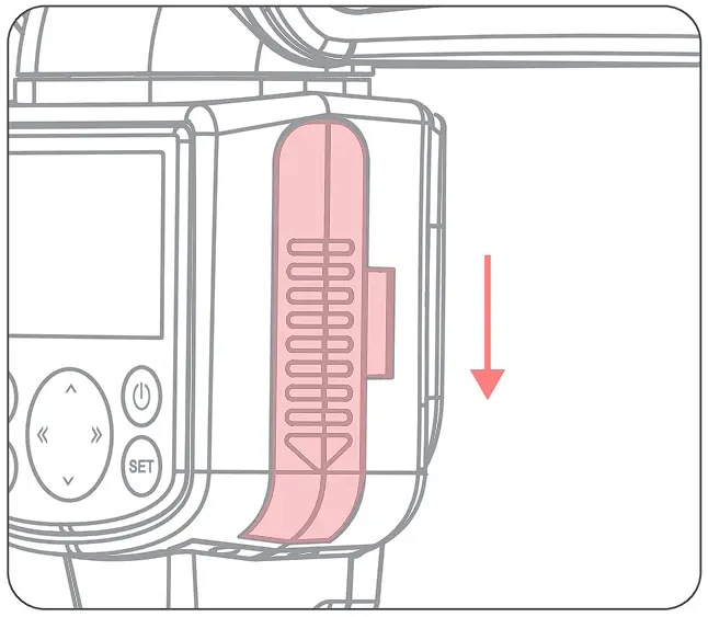 1: Slide the cover downwards in the direction shown by the arrow to access the battery compartment.