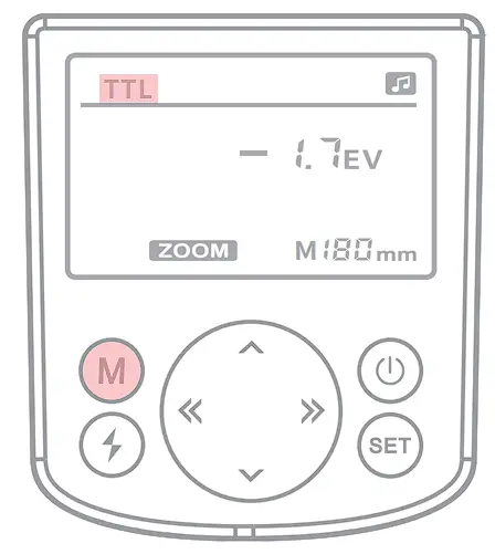 1: Press the “M” mode button until a “TTL” is dis played at the top of the screen.