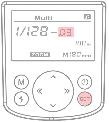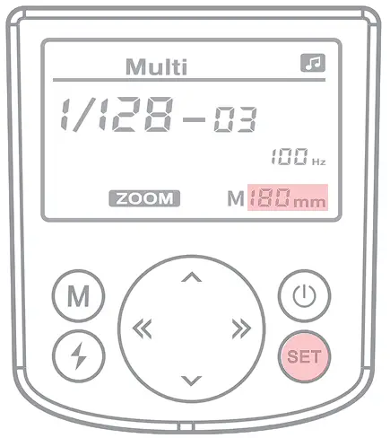 1: Press the “SET” button until the zoom value flashes on the screen.