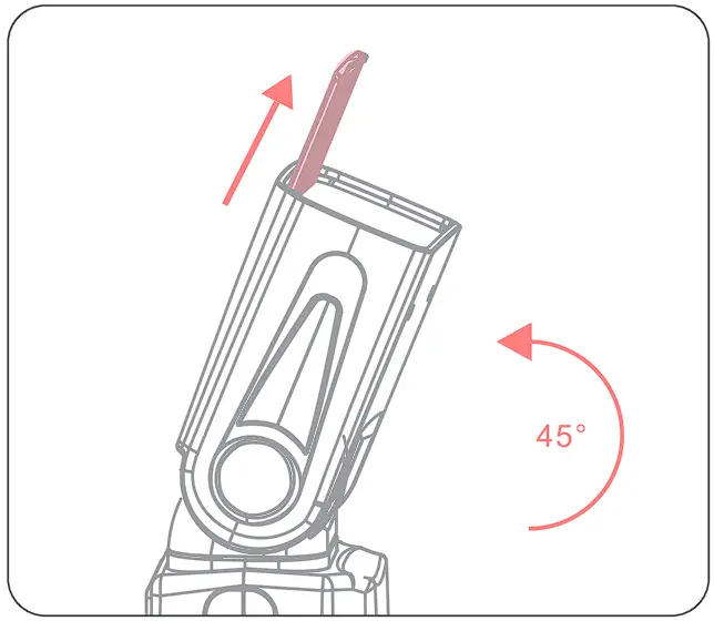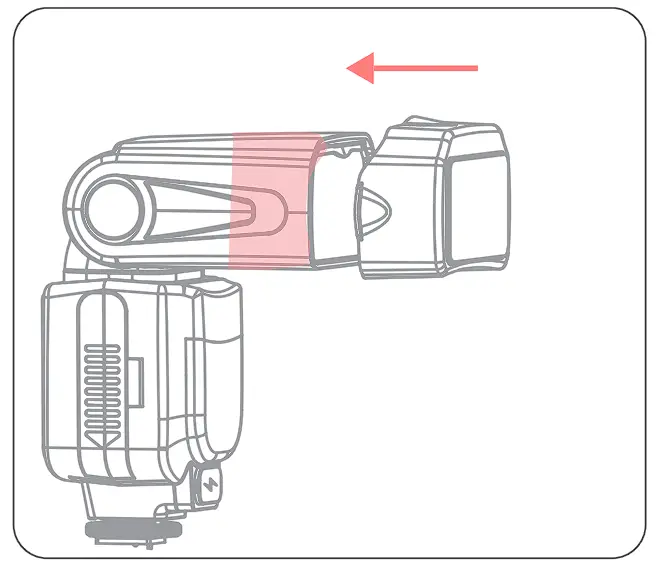 1: Tilt the flash head up by 45 degrees and pull out the wide panel and reflector.