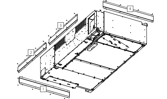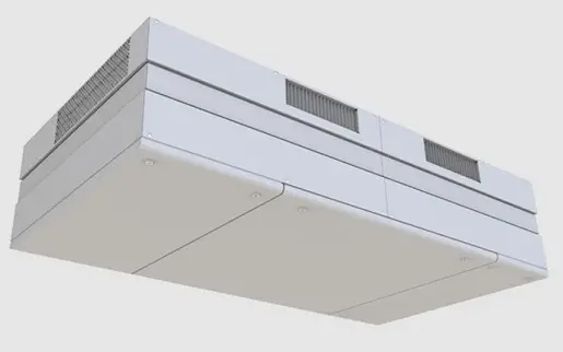 The unit design consists of four blocks rigidly fastened to each other. For maintenance, the unit is equipped with hinged service doors with locks and service hatches for filter replacement.