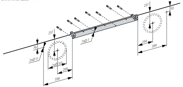 While mounting the unit, avoid compression of the casing! Deformation of the casing may result in motor jam and excessive noise.