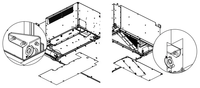 - Loosen the screws securing the protective plates. Then move the plates so that the screw caps match the holes, and remove the plates.