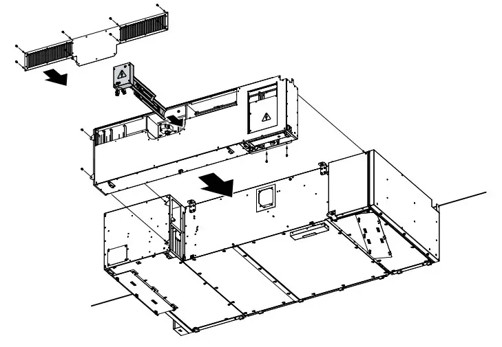 - Unscrew the screws on the shorter retaining plate, remove it and pull the first heat exchanger to remove it from the unit.