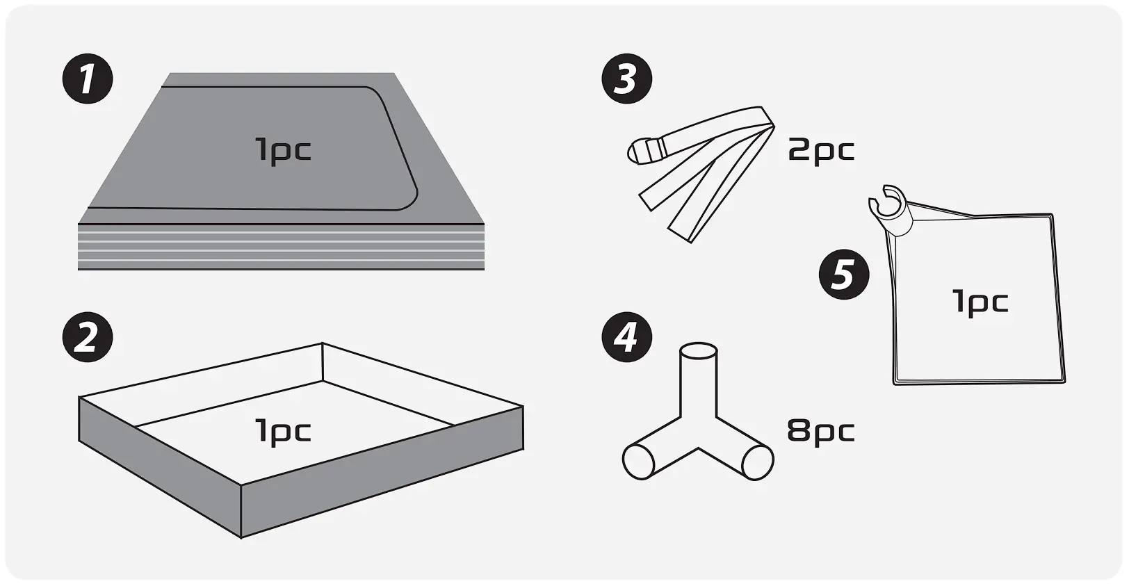 - Construction Materials: 600D Canvas with Metal Poles and Corner Adapters