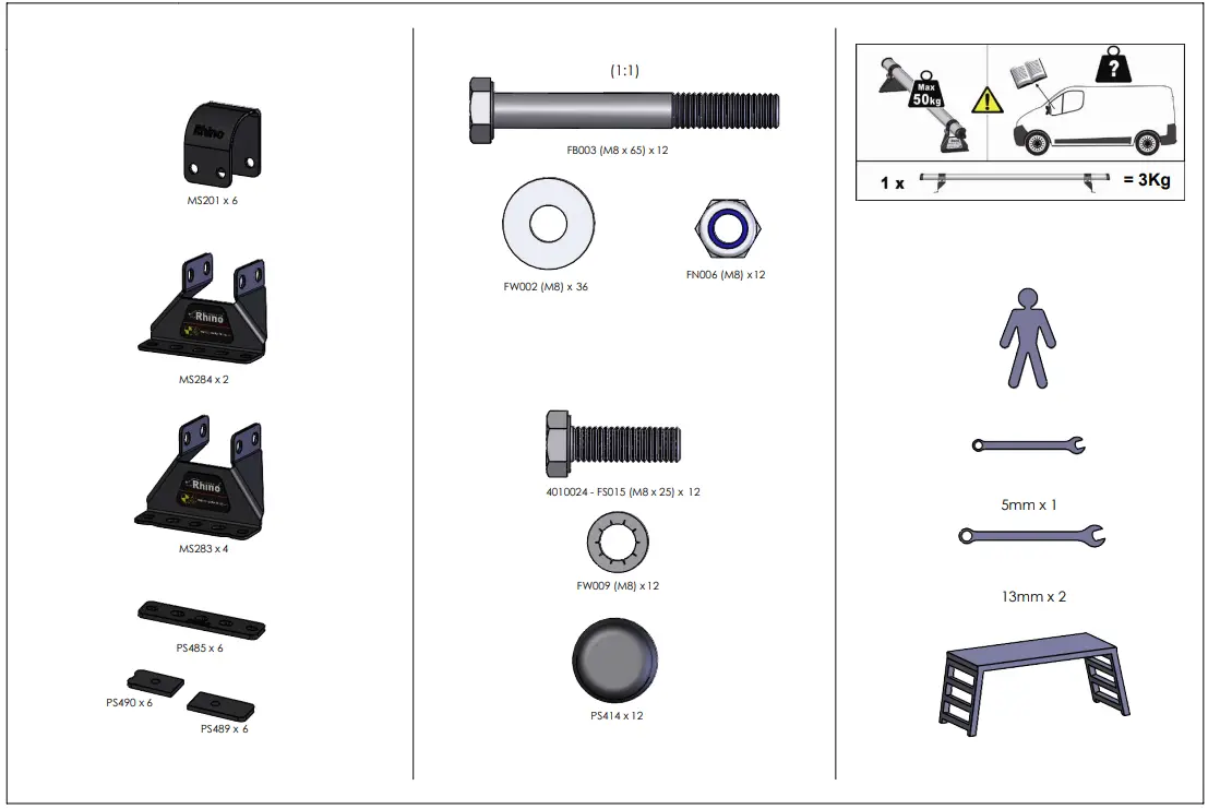 ROOF RACKS TB3D Rhino 3 Bar Delta System