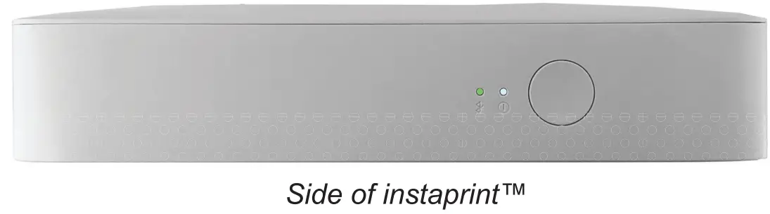 ![]() | White LED Solid: Power ON White LED Blinking: Printing in progress Pink LED Blinking: Firmware upgrade in progress Red LED Blinking: No paper+ink cartridge White LED Blinking: Camera is cooling down |