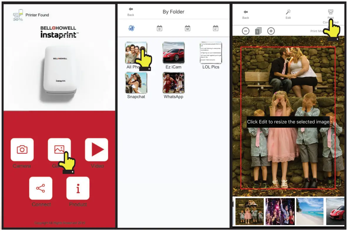 - Launch the “BELL +HOWELL lnstaprint” app from your smartphone.