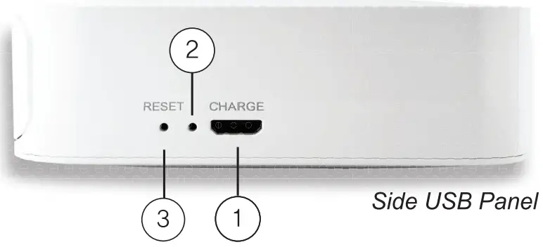 ① USB Port: Plug in to recharge battery