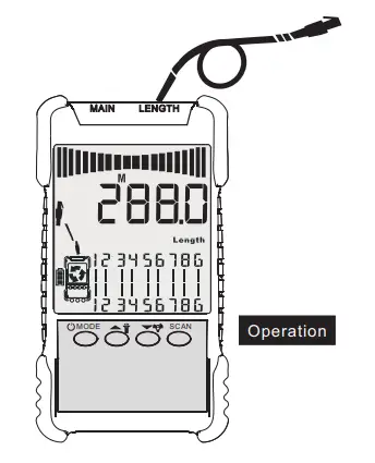 Press the Power button to switch on the product Then the product is ready for measuring cable length At the bottom of the display the 8P8C network cable 4P4C network cable phone lines and BNC cable
