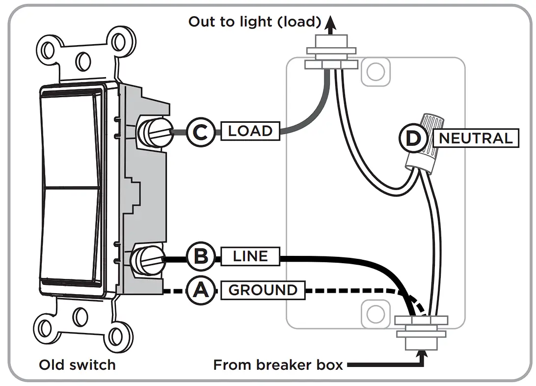 D. Neutral – White - Disconnect the wires from the existing switch – label wires according to the previous terminal connections.