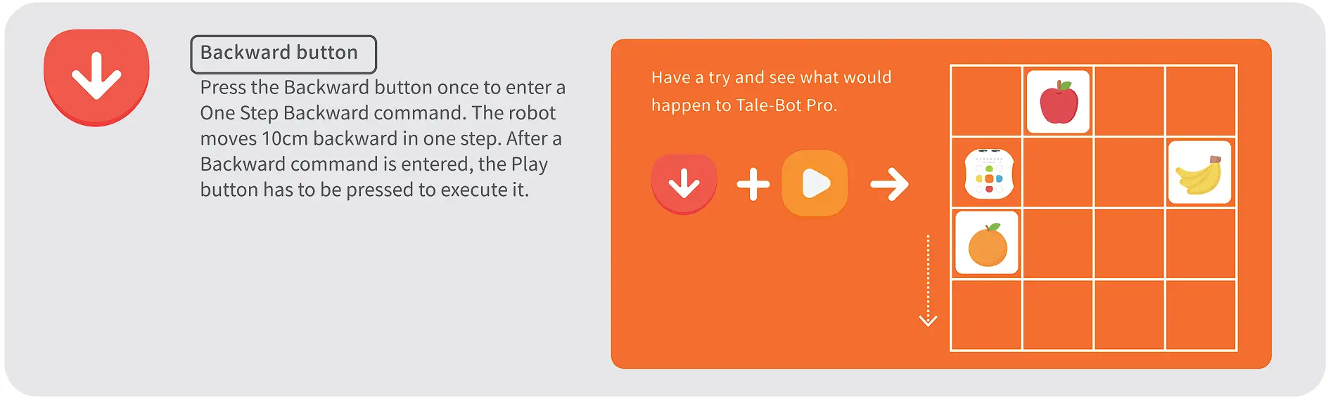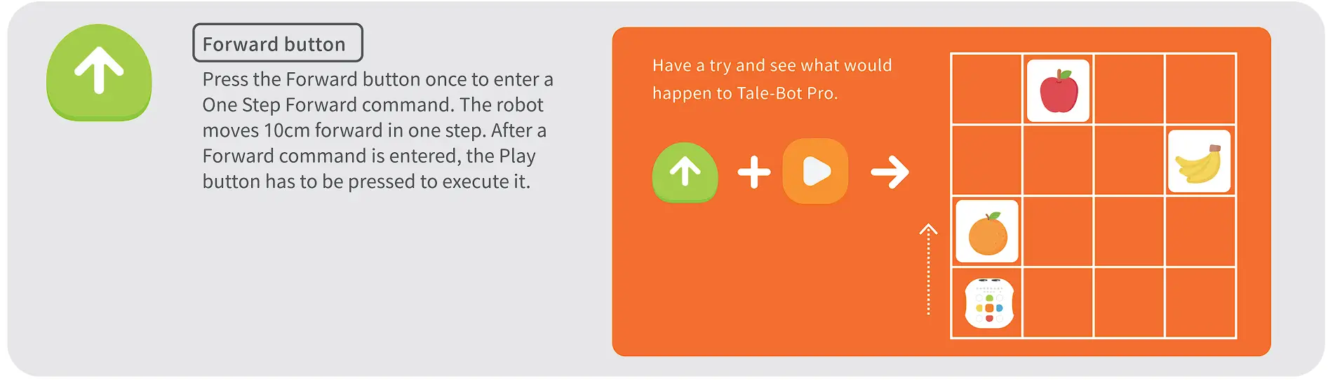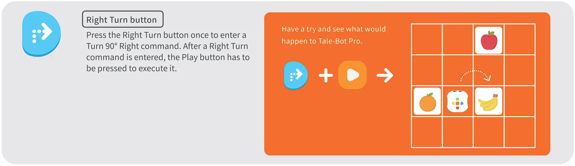 Help Tale-Bot Pro walk along the path planned in the picture below by coding commands to eat the two blades of grass, and make Tale-Bot Pro say “Grass eaten!” every time it eats one!