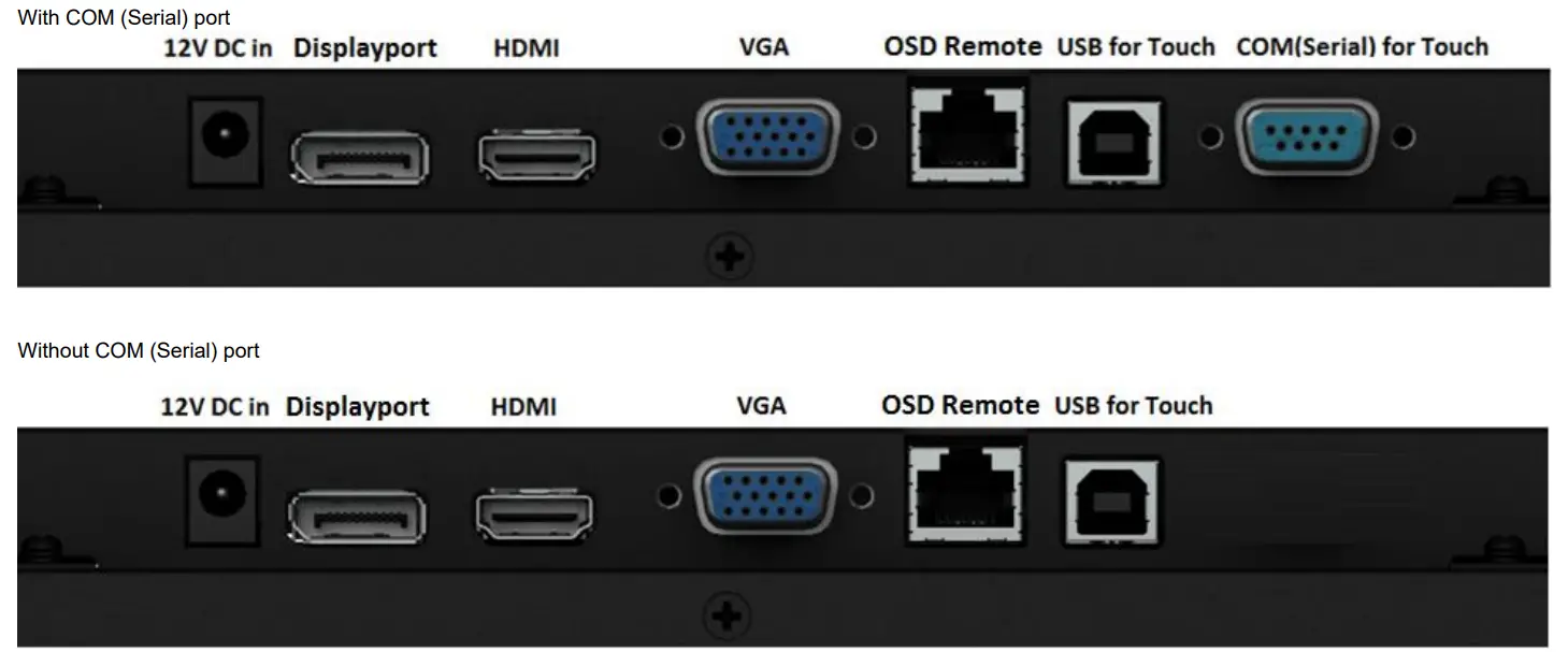 *Please note the COM (Serial) port for touch is only applicable for EXX9XL-XCXX models and removed for the rest models.