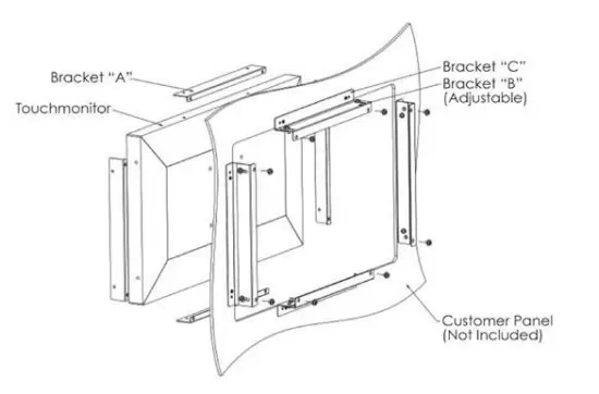 - Adjust the depth of bracket “B” so the monitor is flush with customer panel