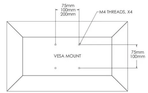 A four-hole mounting pattern for M4(10mm) screws is provided on the rear of the monitor.