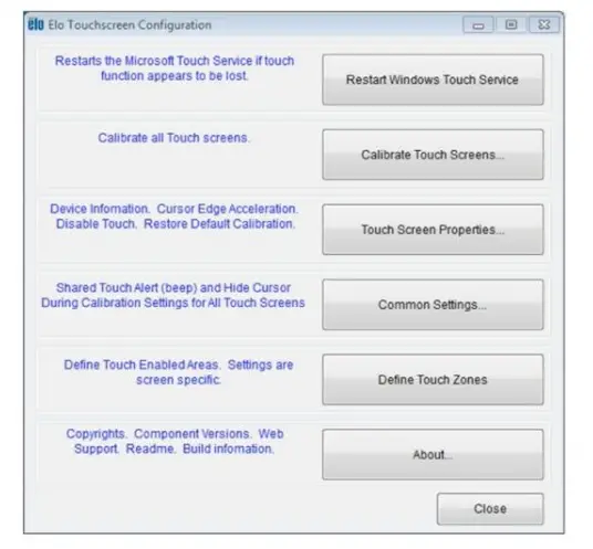 To use multiple IntelliTouch Dual Touch monitors, double click on the EloConfig desktop shortcut to open up the Elo Touch Configuration screen