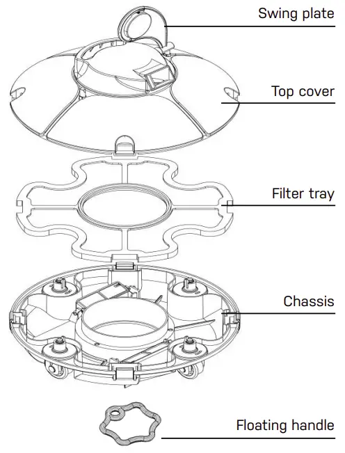 A sound signal comes when lifting the pool robot out of the pool. Press theswitch to OFF and the cleaner will be shut down. Always clean the filter tray after use.